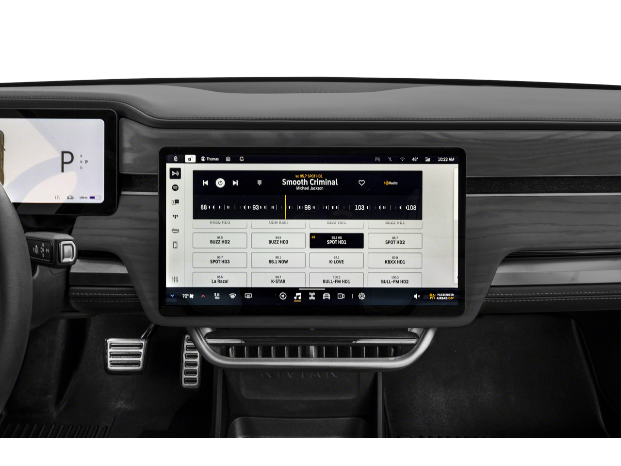 - Radio: New Rivian Elevation Audio -inc: a common 1200-watt, 18-channel amplifier, FM/HD Radio, Bluetooth®, Spotify and TuneIn