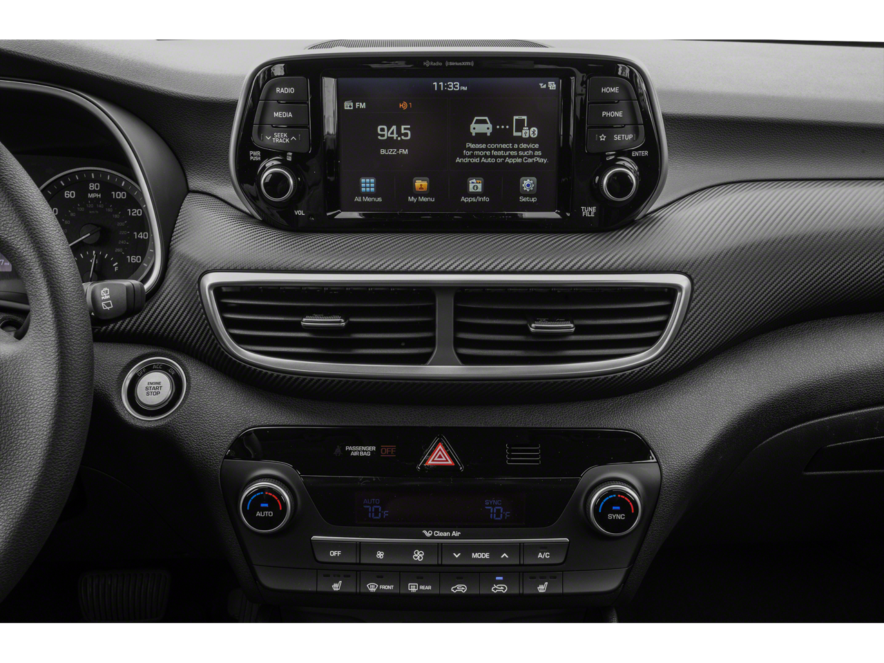 - Radio: AM/FM/SiriusXM Audio System -inc: 7" color touchscreen display audio, Apple CarPlay, 6 speakers, USB/AUX input jack, Bluetooth® hands-free phone system, HD Radio, VR and Blue Link connected car system